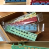 Very cute wooden rulers in the shape of steam trains, available in 3 colours at the moment: red, green and blue.