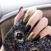 24pcs Black Gold Dust Glitter False Nail Art Tips Full Cover Fake Nails Glue