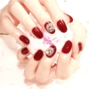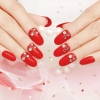 24pcs Crystal Diamante Red False Nail Art Tips Full Cover Fake Nails With Glue