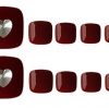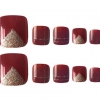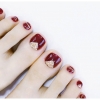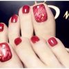 24pcs Crystal Diamonds Gold Dust Red False Toe Nail Art Tips Fake Toenails