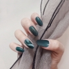 24pcs Dark Green Marble Effect False Nail Art Tips Full Cover Fake Nails Glue