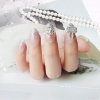 24pcs Diamante Decoration Silver Dust Glitter Oval False Nail Tips Fake Nails