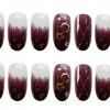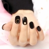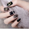 24pcs Gold Diamante Decoration Black False Nail Art Tips Full Cover Fake Nails