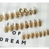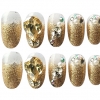 24pcs Gold Dust Glitter Diamante False Nail Tips Full Cover Fake Nails With Glue