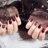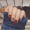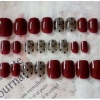 24pcs Wine Red Dots Pattern False Nail Art Tips Full Cover Fake Nails With Glue