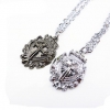 Most are with stainless steel chains, but some designs are supplied with faux leather chains, as shown in the photos.