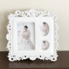 Vintage style white wooden freestanding photo frame with 3 photo slots and flowers border