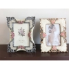 Vintage style 6x4 freestanding photo frame with embossed rose flowers, available in two different designs.