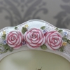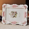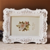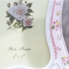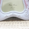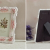 Elegant vintage style white freestanding photo frame with embossed white / pink rose flowers.