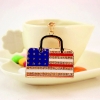American Flag Handbag Shape Crystal Diamante Bag Charm