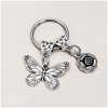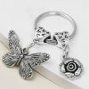 Antiqued Silver Butterfly Rose Flower Keyring Nature Animal Insect Lovers Gift