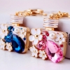 Beautiful Flower Perfume Bottle Shape Crystal Diamante Rhinestone Bag Charms Handbag Keyrings