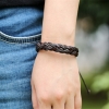 Black Adjustable Leather Wristband Bracelet Mens Womens Teens Boys Girls