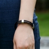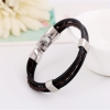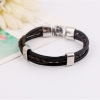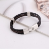 Black Braided Leather Wristband Bracelet Stainless Steel Mens Womens Boys Girls