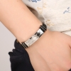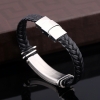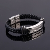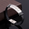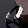 Black Braided Leather Wristband Bracelet Stainless Steel Mens Womens Boys Girls