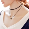 Black Faux Leather Choker Necklace With Clover Flower Pendant Charm