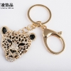 Black Gold Leopard Head Animal Shaped Diamante Rhinestone Bag Charms Handbag Pendant Keyring Key Cha