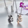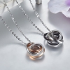 Black Gold Titanium Steel Diamante Triple Rings Pendant Lovers Couple Necklace