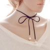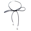 Black Suede Choker Necklace With Double White Pearls Shaped Pendant Charm