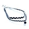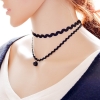 Black Suede Lace Choker Necklace With Rhinestone Pearl Shaped Pendant Charm