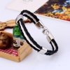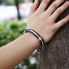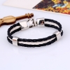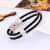 Black White Braided Leather Wristband Bracelet Stainless Steel Mens Womens Teens