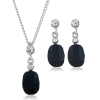 Blue Black Rhinestone Pendant Silver Necklace And Earrings Set Costume Jewellery