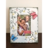 A stylish white wooden freestanding portrait photo frame with blue and pink butterflies.