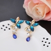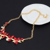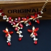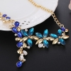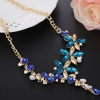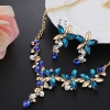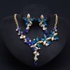 Blue Red Flowers Pendant Gold Necklace Earrings Set Diamante Costume Jewellery