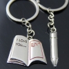 Book Pen I Love You Silver Metal Couple Keyrings Lovers Puzzle Key Chains Set