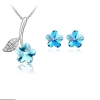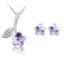 Cherry Flower Silver Necklace And Earrings Set Costume Jewellery Crystal Diamante Rhinestones
