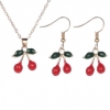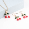 Cherry Silver Necklace And Earrings Set Costume Jewellery Crystal Diamante Rhinestones