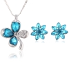 Clover Flower Silver Necklace And Earrings Set Costume Jewellery Crystal Diamante Rhinestones