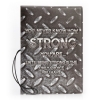 Very cool metal effect passport cover with the phrase "You never know how strong you are, until being strong is the only choice you have.", supplied with ticket pouch and elastic band for extra safety.