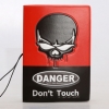 Super cool skeleton skull passport cover with DANGER Don't Touch message