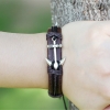 Copper Anchor Brown Adjustable Leather Wristband Bracelet Mens Womens Teens