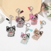 Cute Kitten Cats Leather Crystal Diamante Bag Charms Handbag Keyrings Pendant