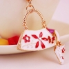 Floral White Handbag Shoe Crystal Diamante Bag Charms Handbag Keyrings Pendant