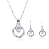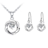 Flower Ring Silver Necklace And Earrings Set Costume Jewellery Crystal Diamante Rhinestones