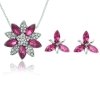Flower Silver Necklace And Earrings Set Costume Jewellery Crystal Diamante Rhinestones