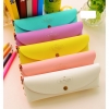 Girls Candy Macaron Colour Soft Faux Leather Pencil Case Cosmetic Makeup Bag