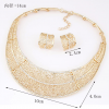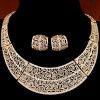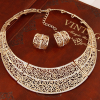 Gold Roses Collar Statement Necklace Earrings Set Costume Jewellery