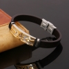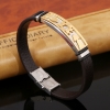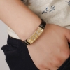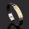 Gold Stainless Steel Tag Brown Leather Wristband Bracelet Mens Womens Boys Girls