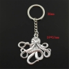 Large Antiqued Silver Octopus Keyring Squid Kraken Sea Monster Animal Vintage