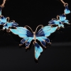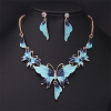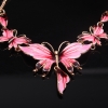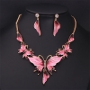 Large Elegant Pink Blue Butterflies Necklace And Earrings Set Costume Jewellery