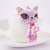 Large Fashion Kitten Cat Crystal Diamante Bag Charms Handbag Keyrings Pendant