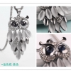 Large Gold Grey Rhinestone Owl Pendant Necklace Fashion Women Jewellery