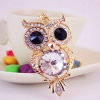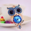 Large Owl Blue Crystal Diamante Rhinestone Bag Charms Handbag Keyrings Pendant