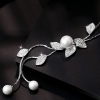 Large Pearl Flower Crystal Leaves Necklace Pendant Silver Fashion Lady Jewellery