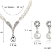 Large White Pearls Silver Necklace And Earrings Set Costume Jewellery Crystal Diamante Rhinestones