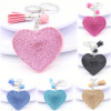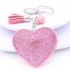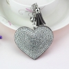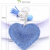 Love Heart Shape PU Leather Crystal Diamante Rhinestone Bag Charms Handbag Keyring Pendant Key Chain